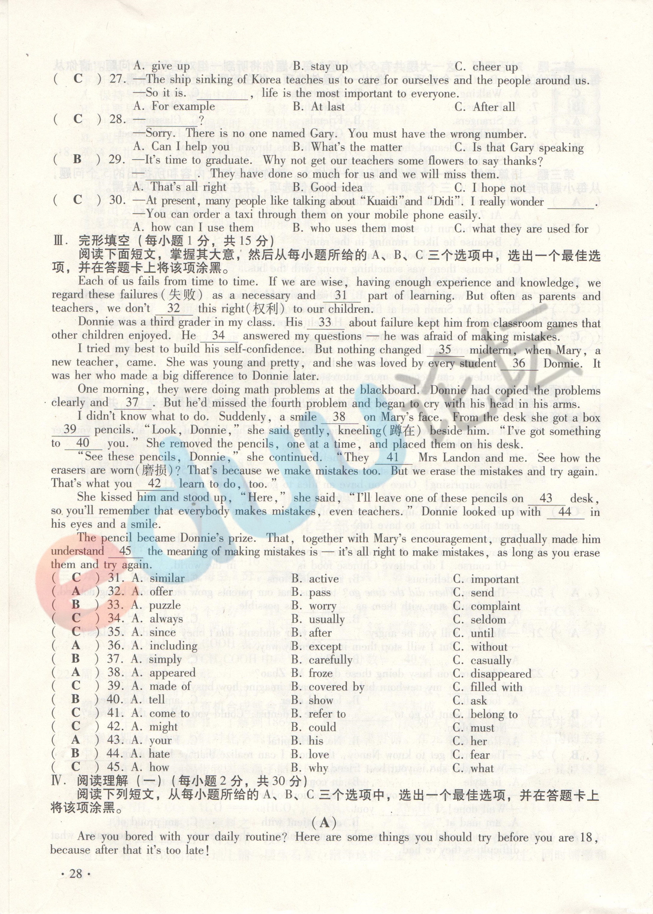 2014年太原中考英语真题答案(已发布)(3) 2014-05-27 17:22:07手掌心 【2014太原中考试题及答案】 语文试题 数学试题 英语试题 物理试题 化学试题 历史答案 政治答案 语文答案 数学答案 英语答案 物理答案 化学答案 历史答案 政治答案 》》》》更中考信息查看【新花怒放】2014太原中考网特别策划