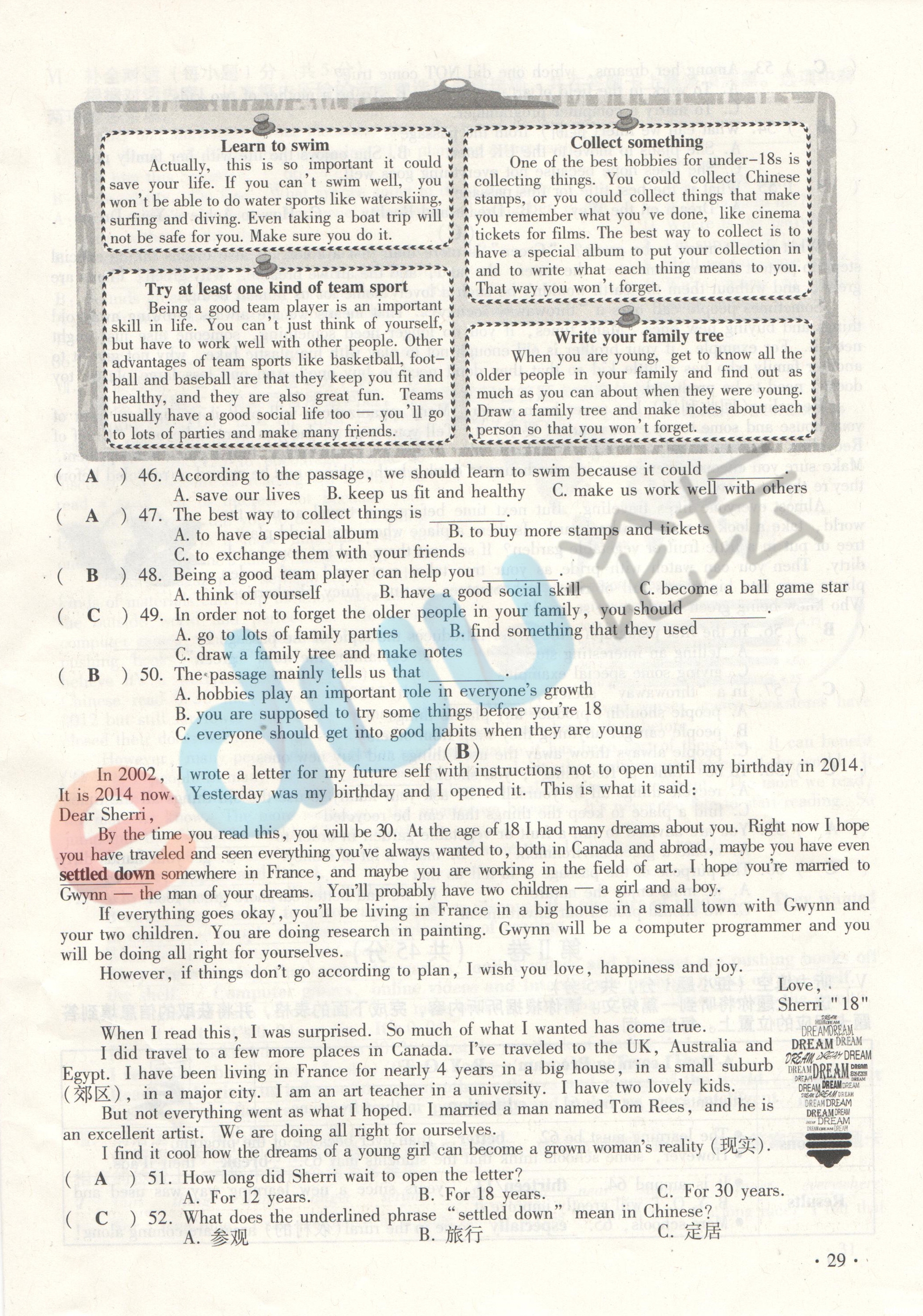 2014年太原中考英语真题答案(已发布)(4) 2014-05-27 17:22:07手掌心 【2014太原中考试题及答案】 语文试题 数学试题 英语试题 物理试题 化学试题 历史答案 政治答案 语文答案 数学答案 英语答案 物理答案 化学答案 历史答案 政治答案 》》》》更中考信息查看【新花怒放】2014太原中考网特别策划