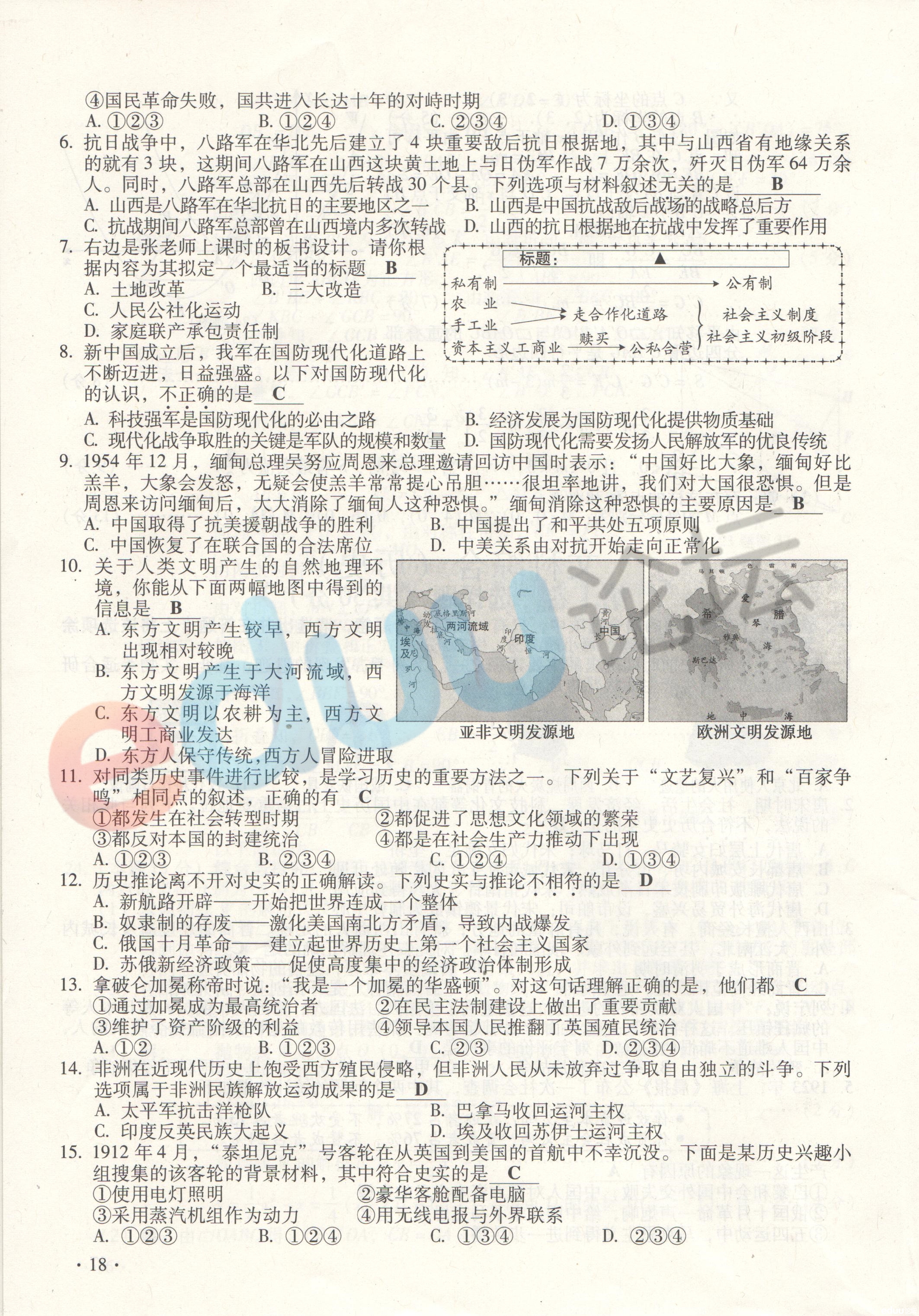 2014年太原中考历史真题答案(已发布)(2) 2014-05-27 17:49:39手掌心 【2014太原中考试题及答案】 语文试题 数学试题 英语试题 物理试题 化学试题 历史答案 政治答案 语文答案 数学答案 英语答案 物理答案 化学答案 历史答案 政治答案 》》》》更中考信息查看【新花怒放】2014太原中考网特别策划