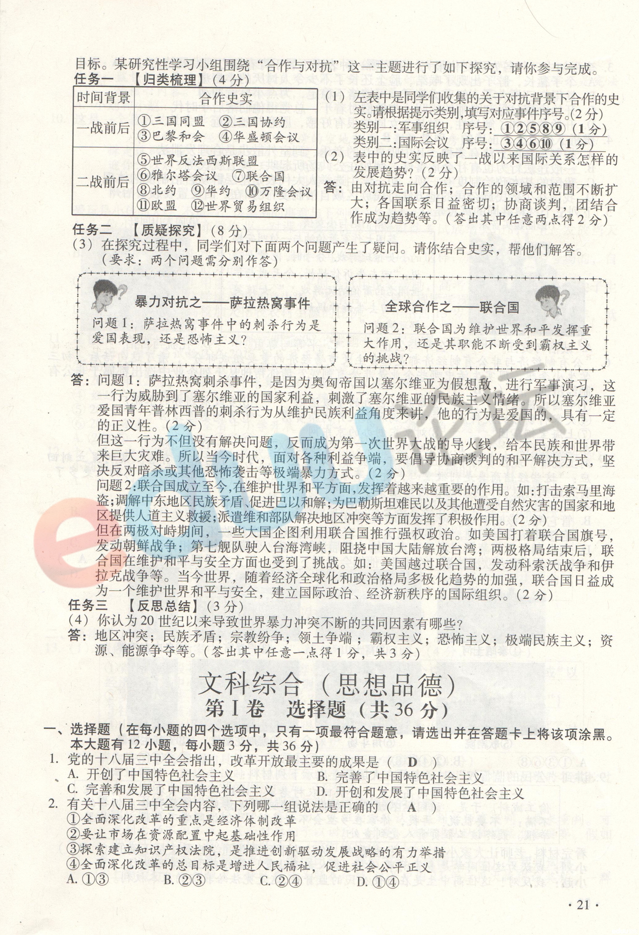 | 语文答案 | 数学答案 | 英语答案 | 物理答案 | 化学答案 | 历史答案 | 政治答案 |