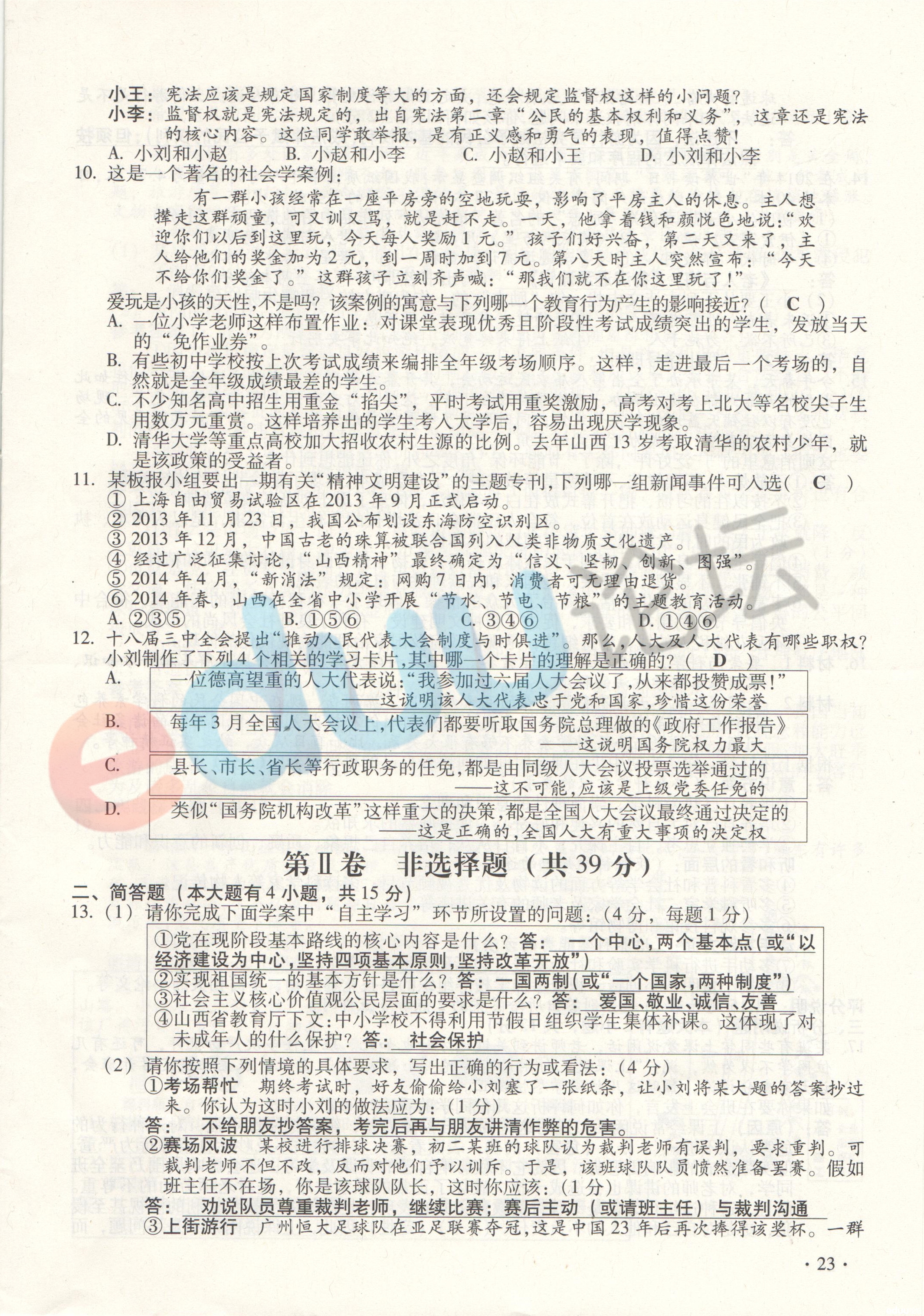 2014年太原中考政治真题(已发布)(3) 2014-05-27 17:58:25手掌心 【2014太原中考试题及答案】 语文试题 数学试题 英语试题 物理试题 化学试题 历史答案 政治答案 语文答案 数学答案 英语答案 物理答案 化学答案 历史答案 政治答案 》》》》更中考信息查看【新花怒放】2014太原中考网特别策划