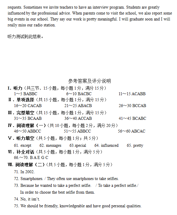 太原市2014年初中毕业班综合测试(二)英语参考答案(4)