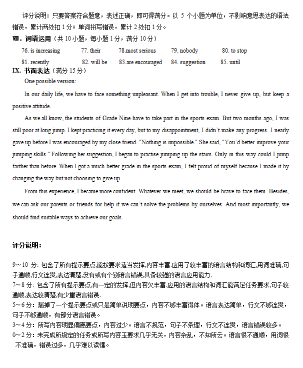 太原市2014年初中毕业班综合测试(二)英语参考答案(6)