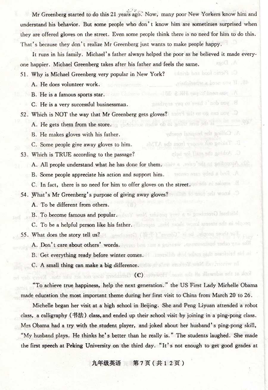 太原市2014年初中毕业班综合测试(二)英语试题(7)