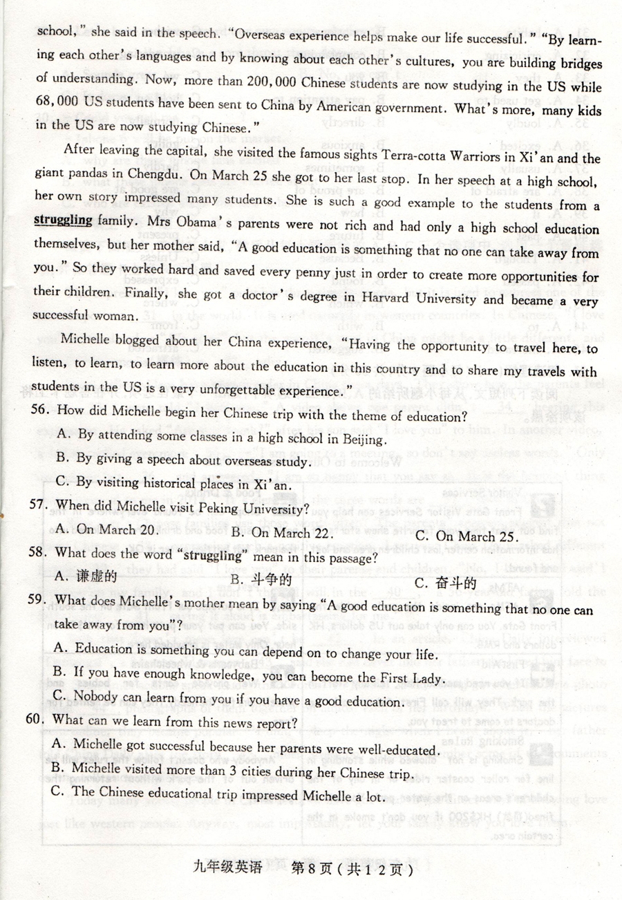 太原市2014年初中毕业班综合测试(二)英语试题(8)