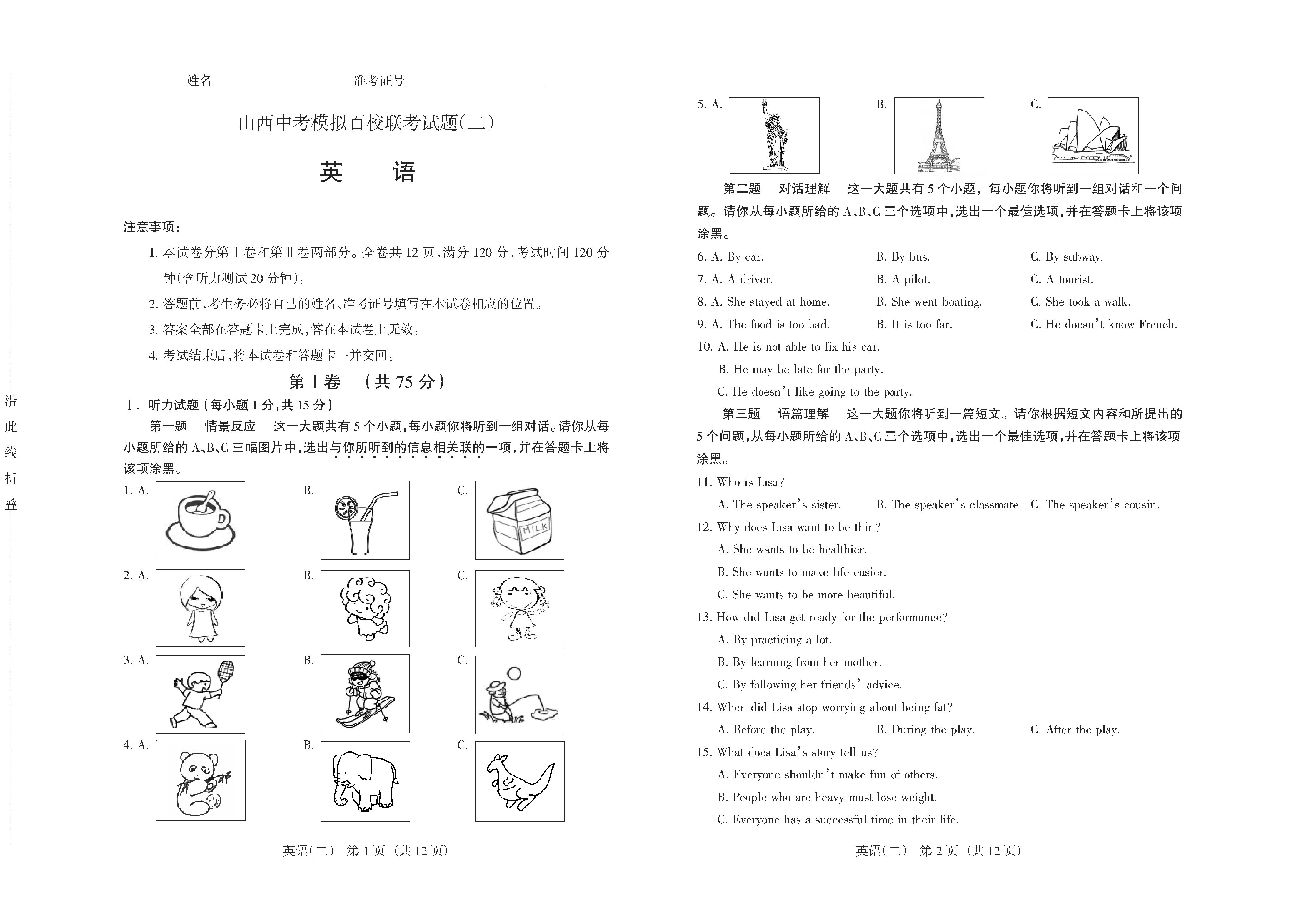太原中考网讯 2014年山西省百校联考二英语试题及答案已出,具体如下。