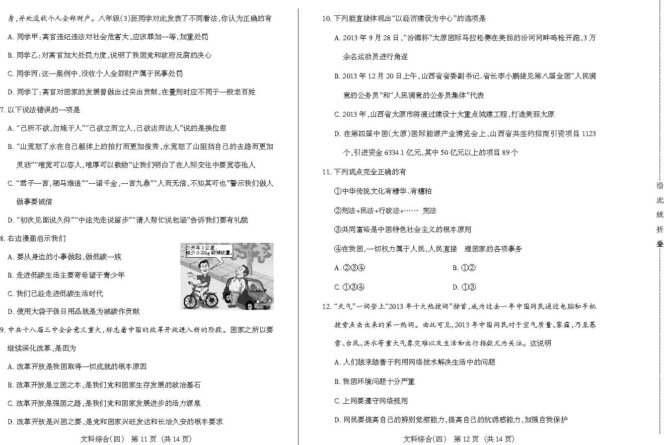 2014年山西省百校联考四文综试题及答案(3)