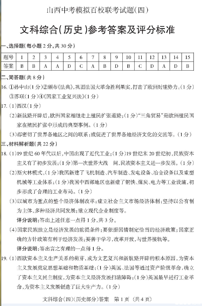 2014年山西省百校联考四文综试题及答案(9)