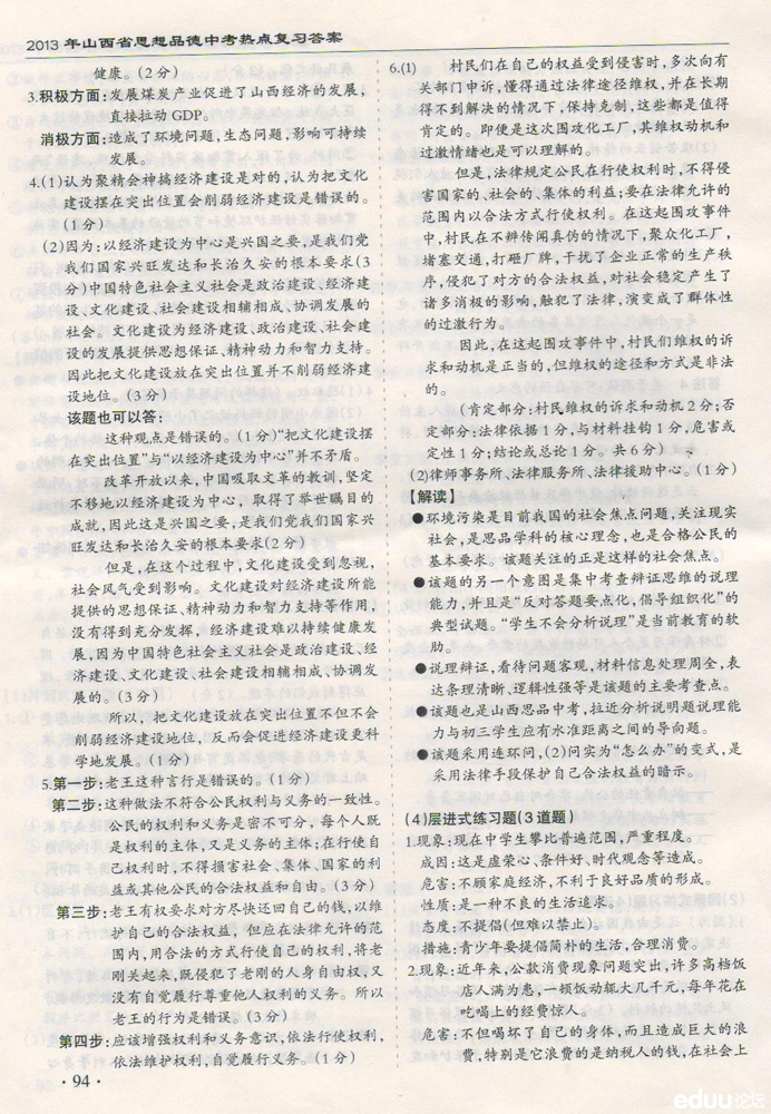 2014年山西省思想品德中考热点复习(10)