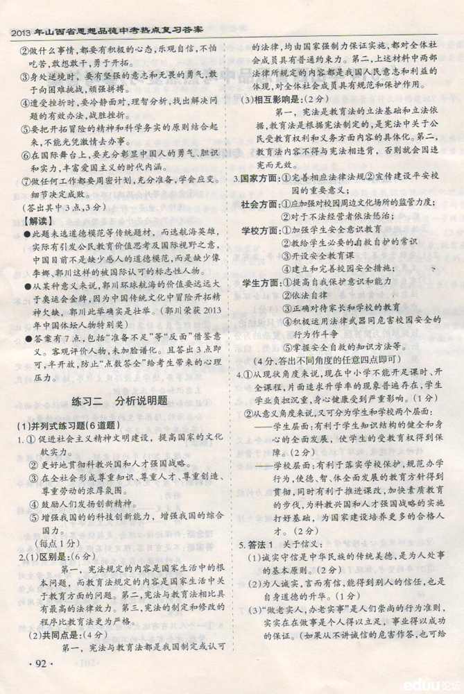 2014年山西省思想品德中考热点复习(3)