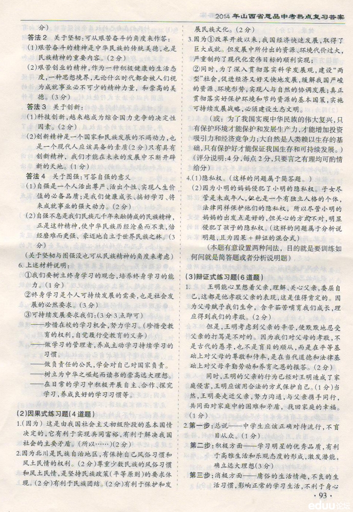 2014年山西省思想品德中考热点复习(4)