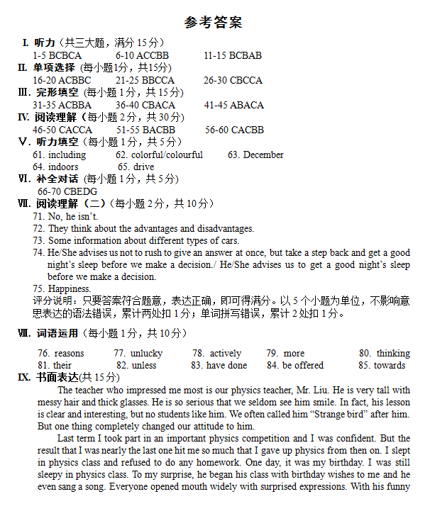 太原市2014年初中毕业班综合测试三英语答案(3)