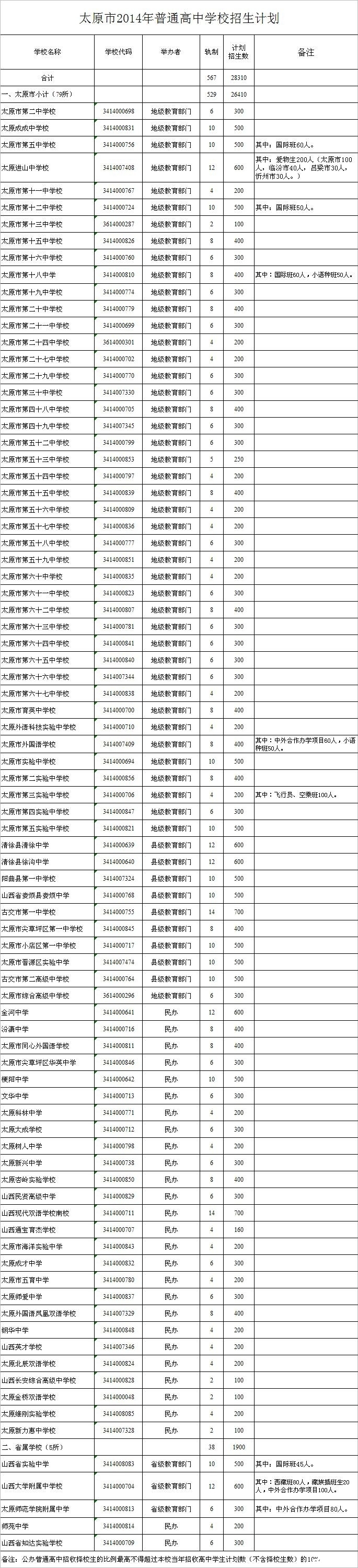 太原市2014年普通高中学校招生计划 2014-06-20 11:06:17e度小编小伟 编辑推荐: 2014年太原高中学校招生计划 2014太原中考开考 太原教育局发八项注意 2014年太原中考志愿填报时间 更多中考信息请看:【2014中考-新花怒放】2014中考特别策划