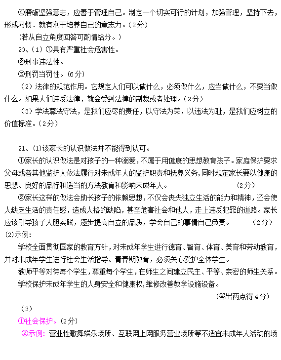 太原市2013-2014学年七年级第四次测评思想品德答案(2)