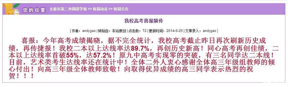 2014年太原二外高考成绩喜报
