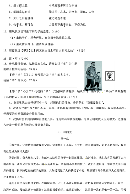 山西农大附中2017-2018学年初二上期中考试语文试题(5)