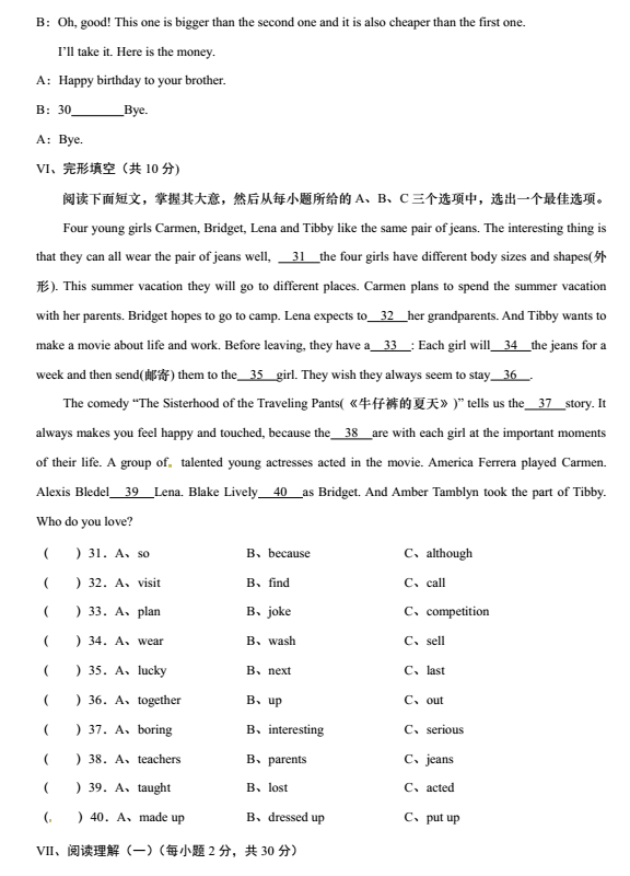 山西农大附中2017-2018学年初二上期中考试英语试题(4)