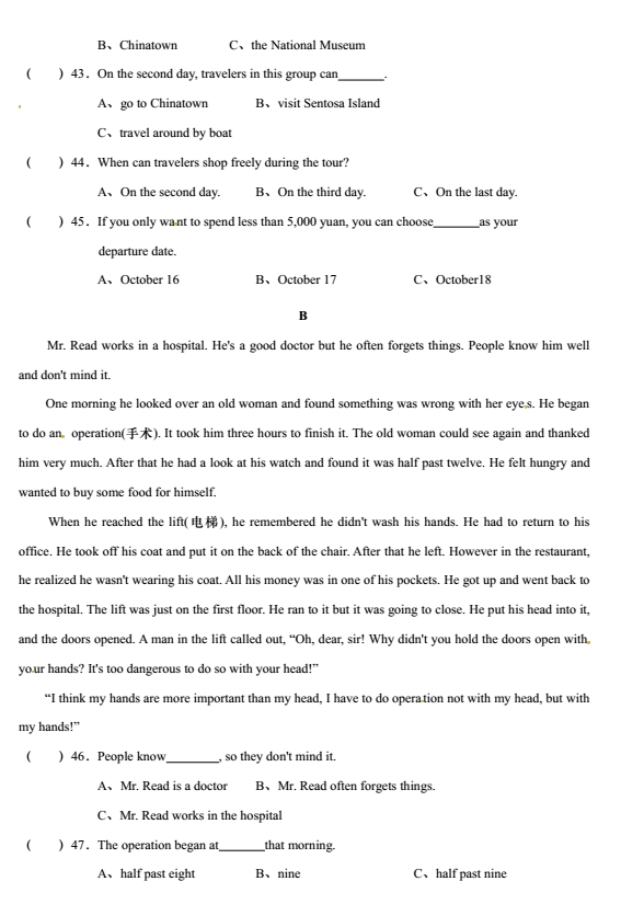 山西农大附中2017-2018学年初二上期中考试英语试题(6)