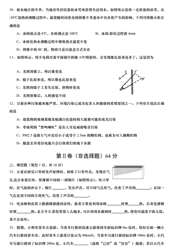 山西农大附中2017-2018学年初二上期中考试物理试题(3)