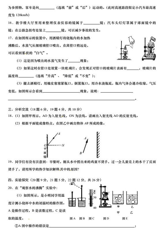 山西农大附中2017-2018学年初二上期中考试物理试题(4)