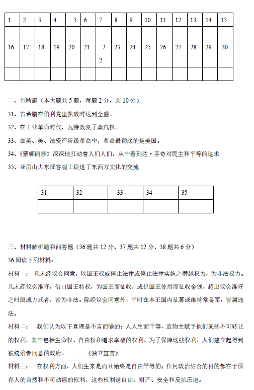 无锡丁蜀学区2016-2017学年九年级上期中历史试题(5)