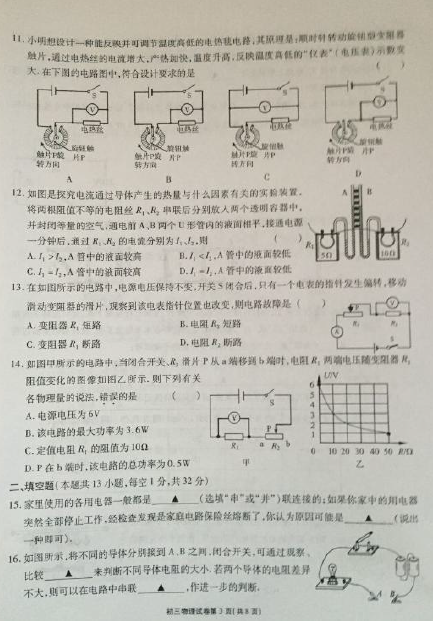 江苏省宜兴市2015-2016学年九年级上期末物理试题(3)