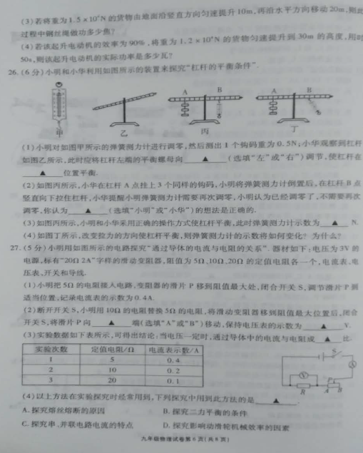 无锡市2016-2017学年九年级上期末物理试题(6)