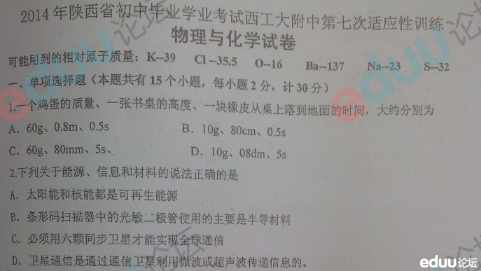 2014西工大附中第七次模拟考试理化试卷 2014-05-20 14:57:26重_楼 试题下载入口: 2014西工大附中第七次模拟考试理化试卷 【查看原帖并参与讨论:2014西工大附中第七次模拟考试理化试卷】