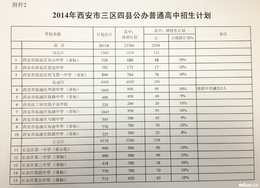 2014西安民办高中及三区四县公办普通高中招生计划(12)