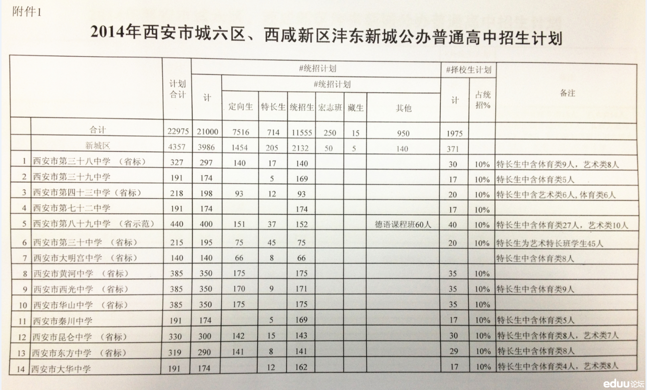2014西安民办高中及三区四县公办普通高中招生计划(6)