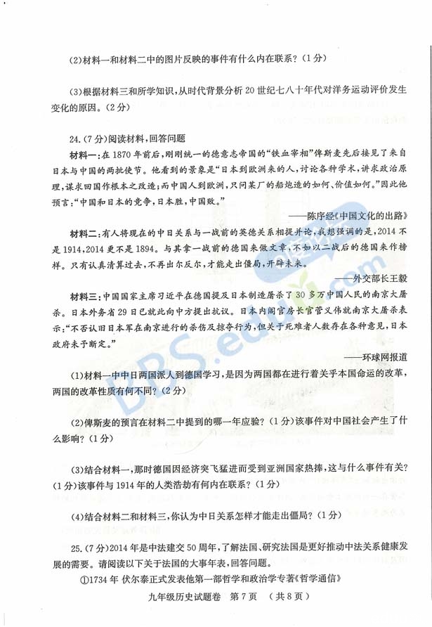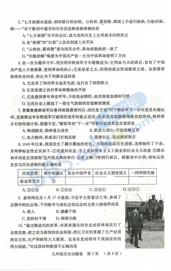 【查看原帖并参与讨论:2014郑州九年级第二次质量预测试卷&历史(在线预览+下载?】