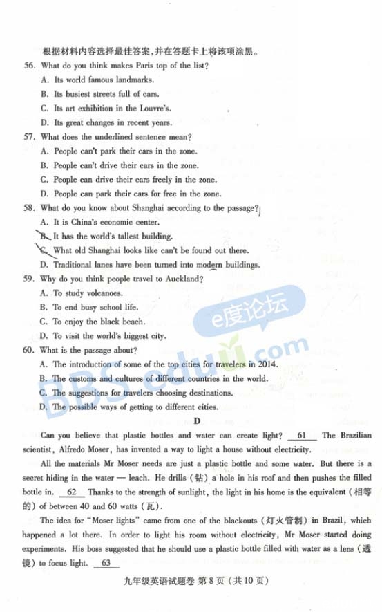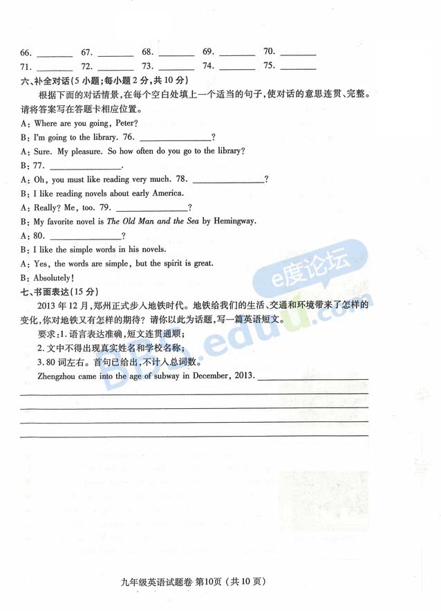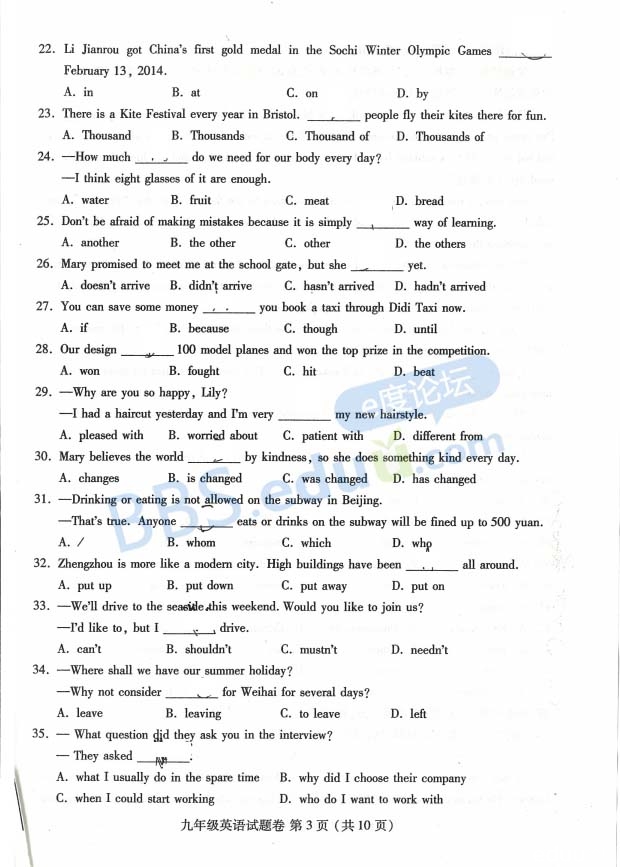 【查看原帖并参与讨论:2014郑州九年级第二次质量预测试卷&英语(在线预览+