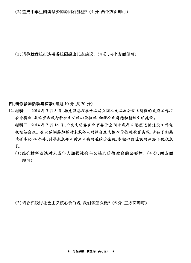 2014年郑州外国语中学第二次中考内测政治试卷(5)