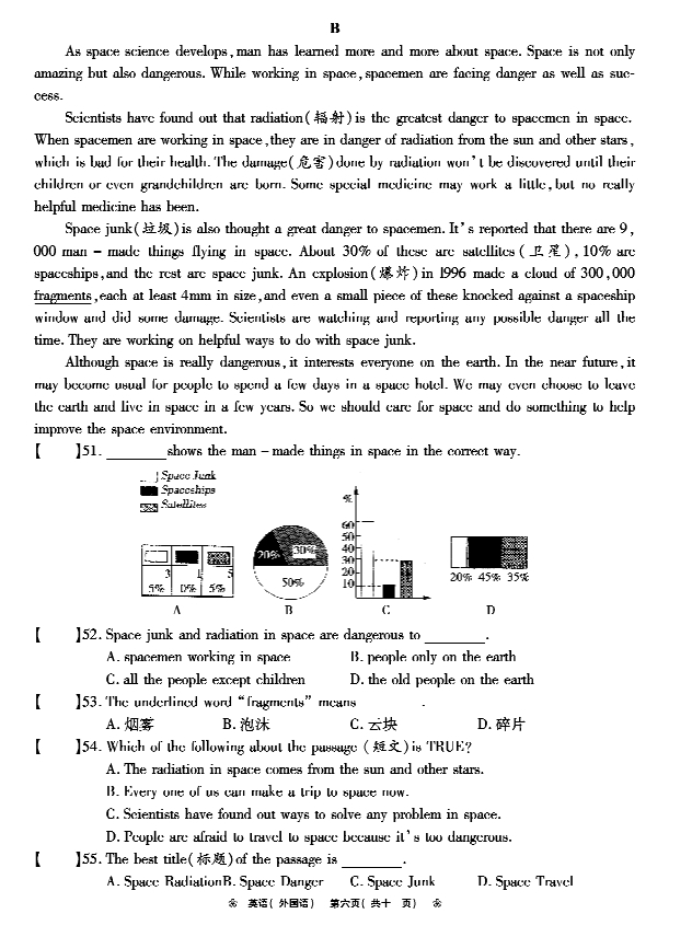 2014年郑州外国语中学第二次中考内测英语试卷(6)