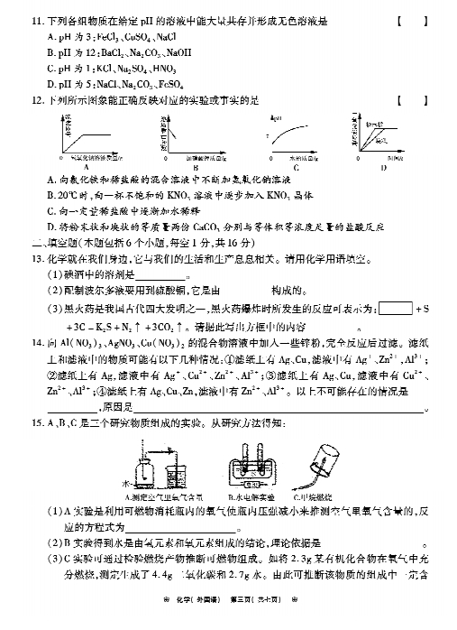 2014年郑州外国语中学第二次中考内测化学试卷(5)