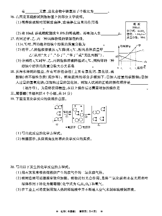 【查看原帖并参与讨论:2014年郑州外国语中学第二次中考内测化学试卷