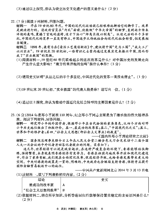 2014年郑州外国语中学第二次中考内测历史试卷(5)