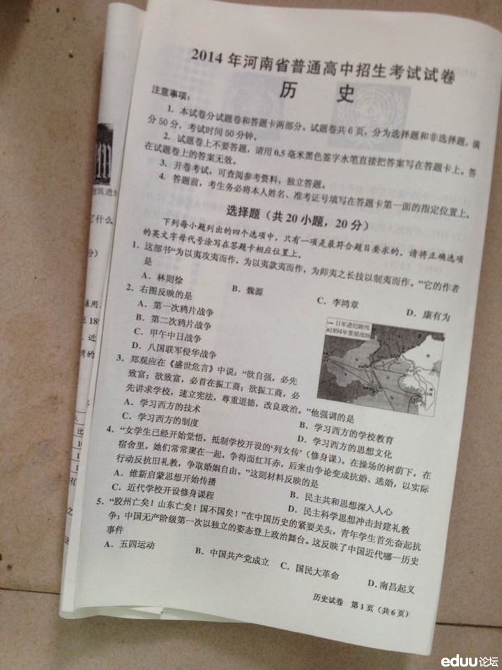 2014河南中招试卷及答案&历史(网络版)(5)